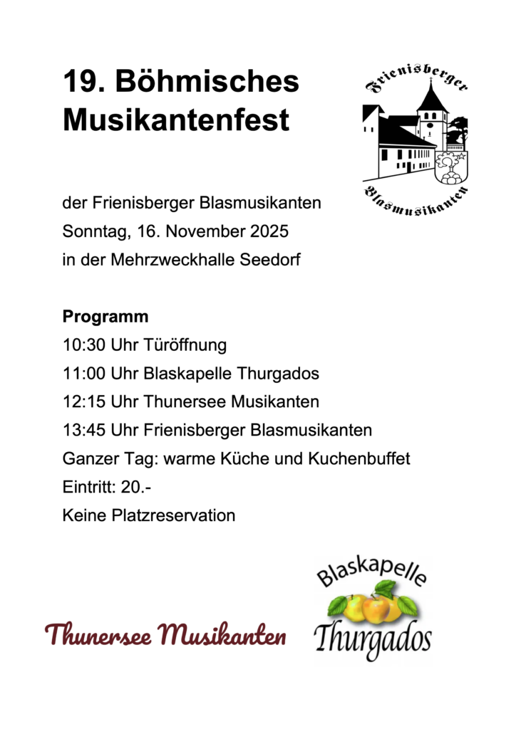 Die Frienisberger Blasmusikanten pflegen vorwiegend den böhmischen Musikstil und haben dank viel persönlichem Engagement jedes einzelnen Musikanten manchen Erfolg und viel Anerkennung in der Blasmusikszene verbuchen können.